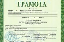 Ахунзянова Айзиля ученица 1 класса заняла первое место в конкурсе чтецов в VI республиканском научно-практическом конференции "Туган җир сулышы" Руководитель Сафина Э.С.