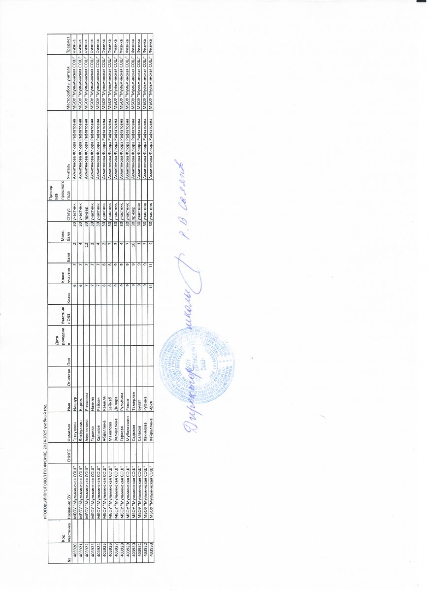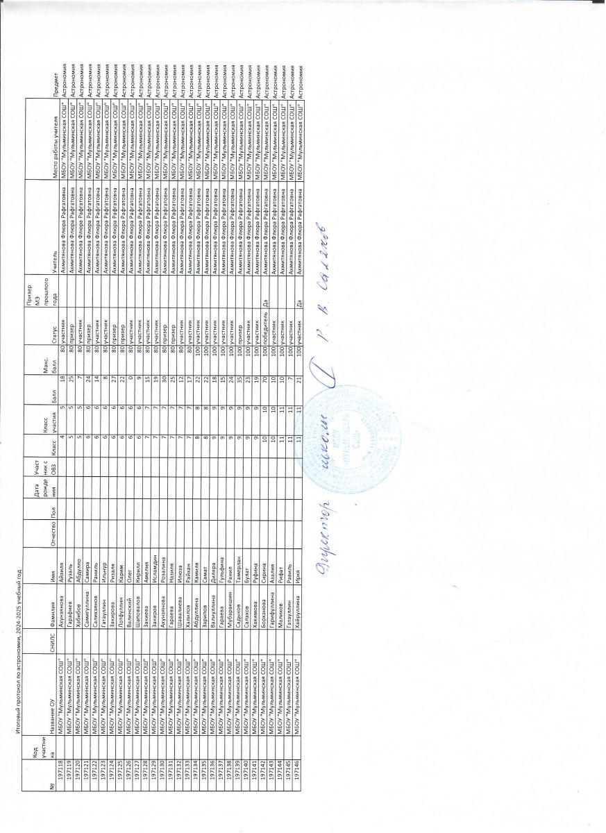 Первичный протокол по астрономии Итоговый протокол по астрономии