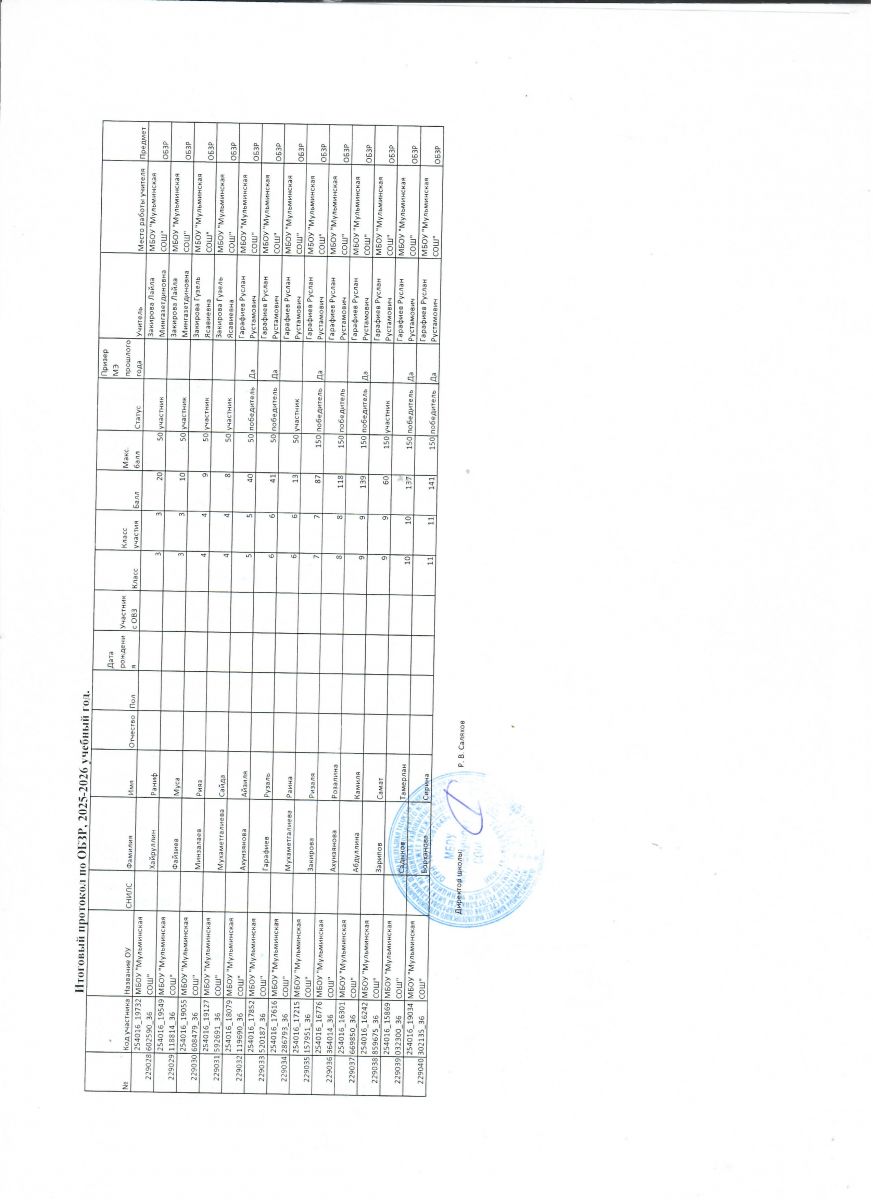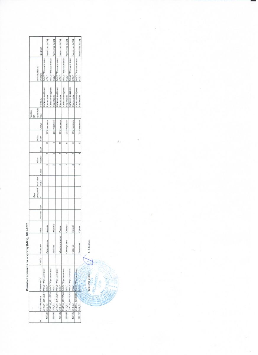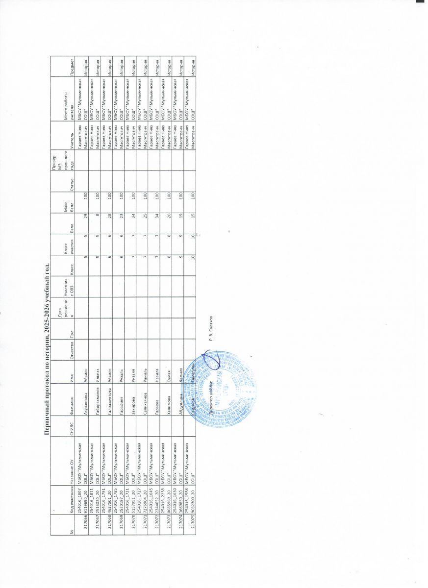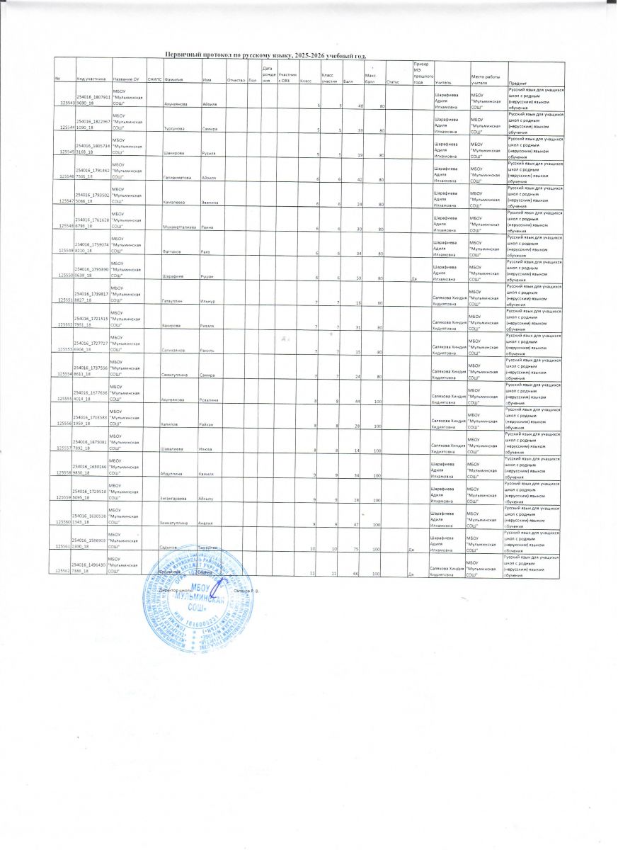 Первичный протокол по математике Итоговый протокол по математике