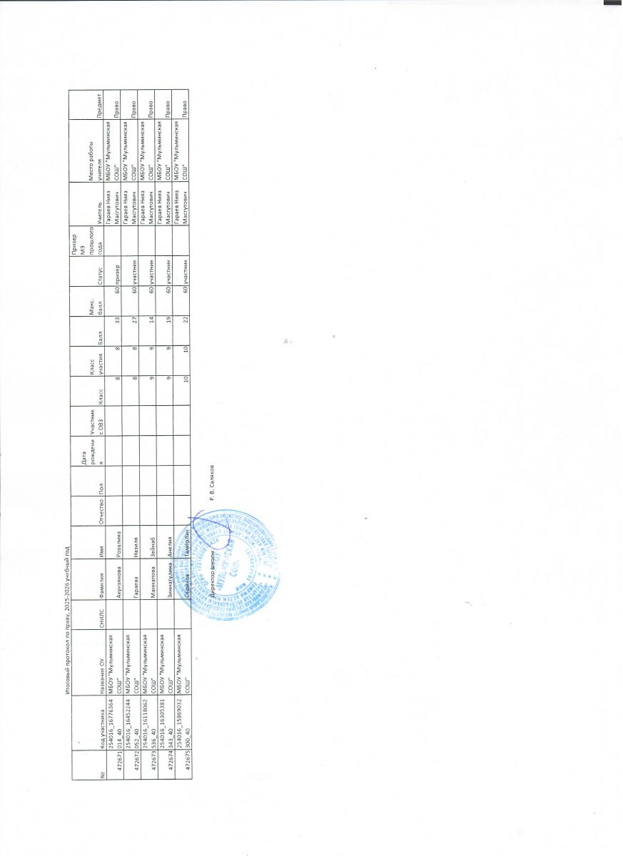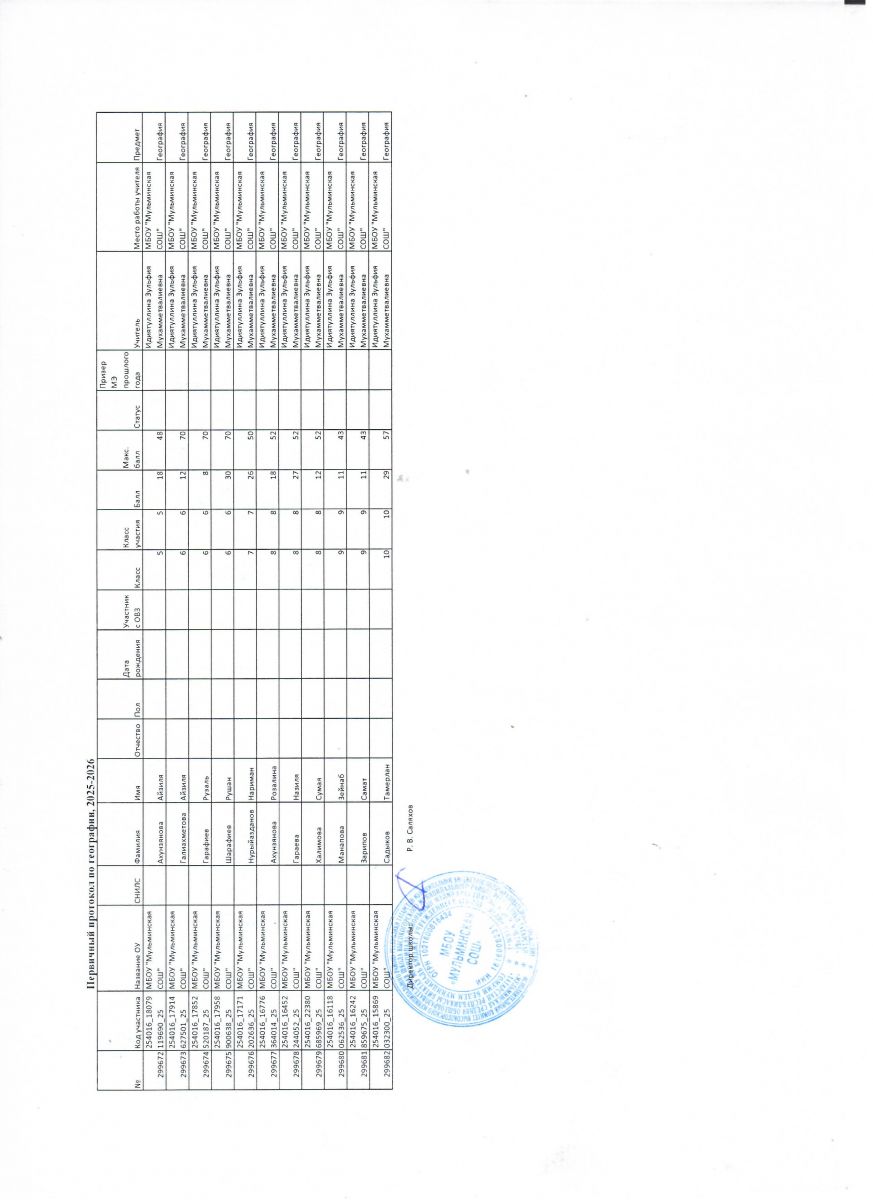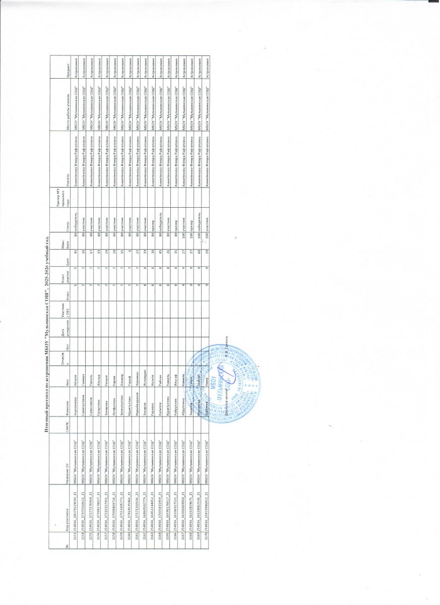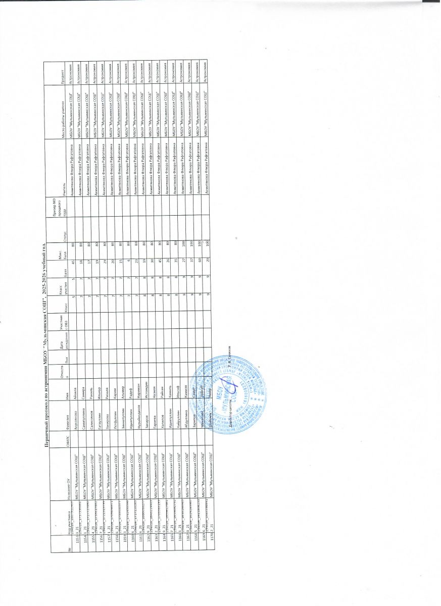 Первичный протокол по астрономии Итоговый протокол по астрономии