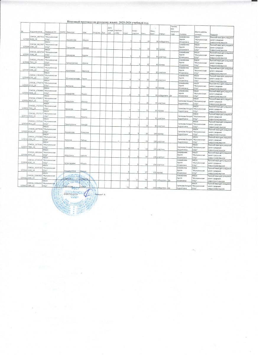 | Короткое название: | МБОУ "Мульминская СОШ" |