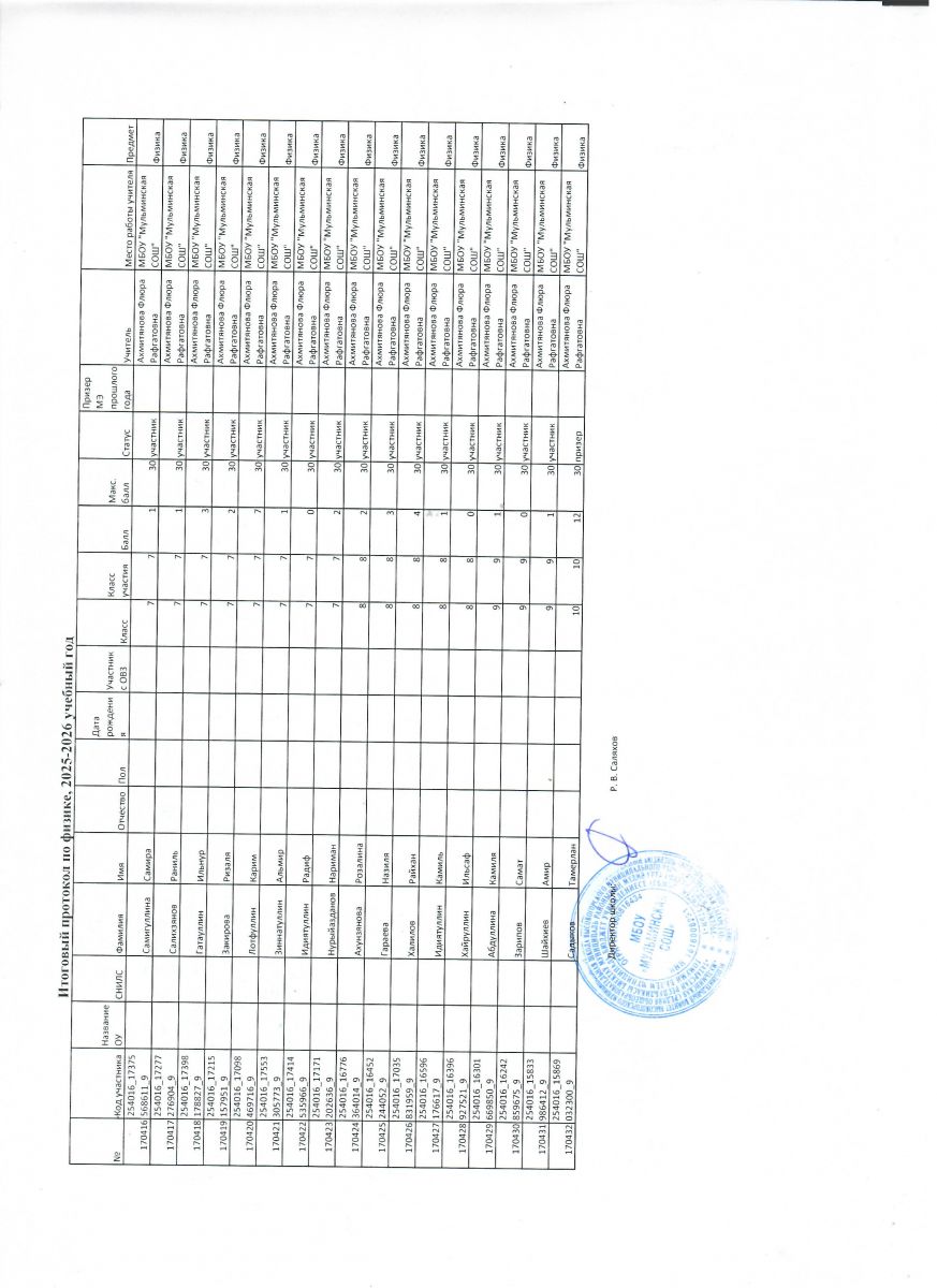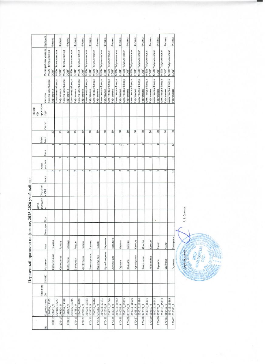 Первичный протокол по физике Итоговый протокол по физике