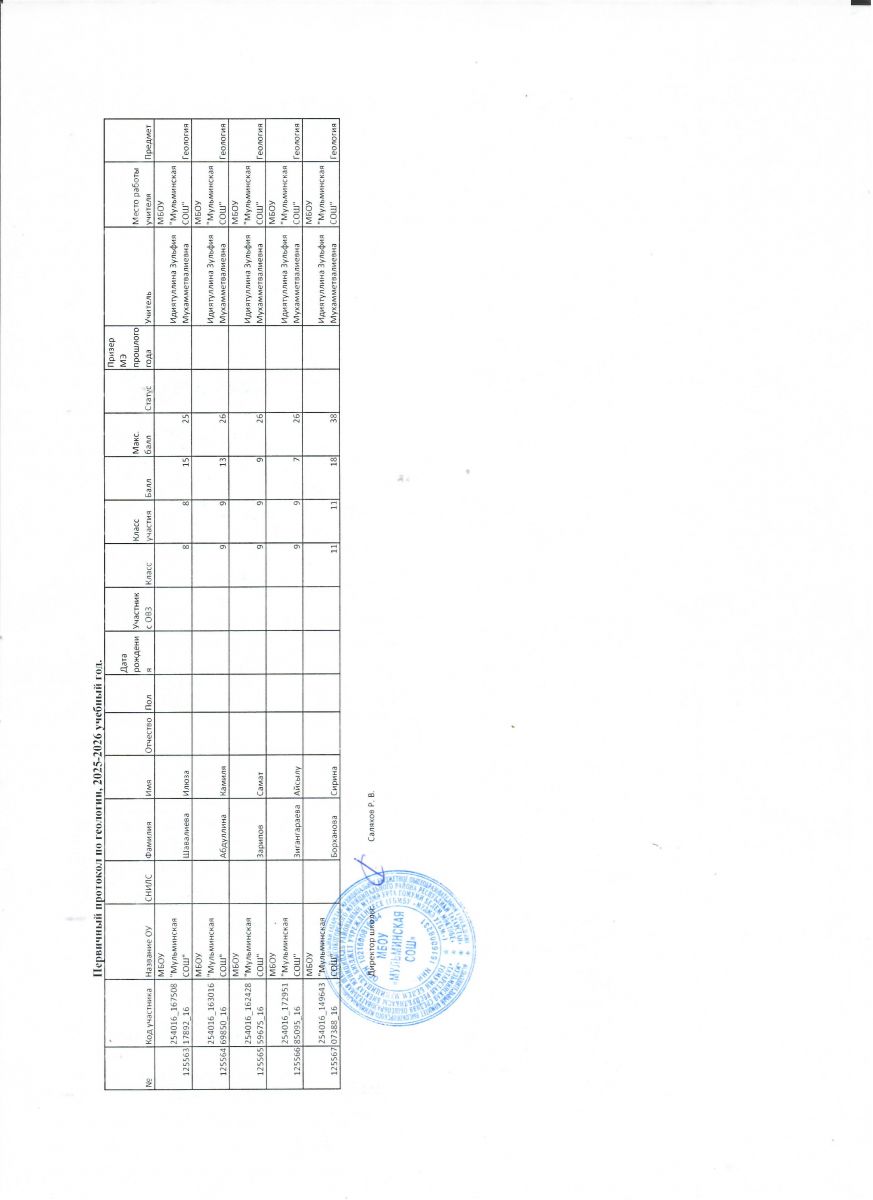 Задания по геологии Ответы по геологии Первичный протокол по геологии Итоговый протокол по геологии