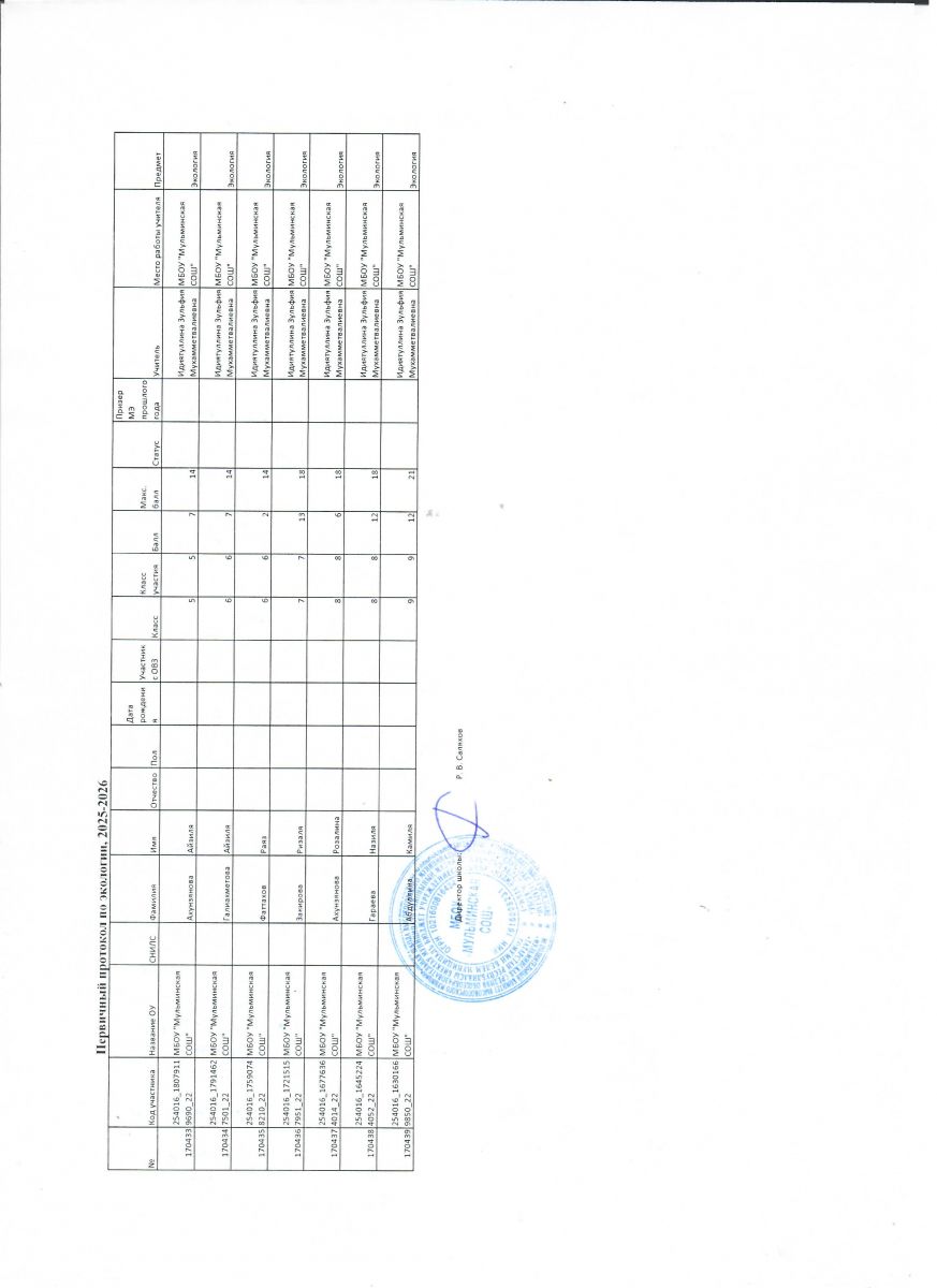 Первичный протокол по биологии Итоговый протокол по биологии