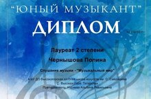 Поздравляем Чернышову Полину, учащуюся 3-го класса, ставшей лауреатом 2 степени на Международной Олимпиаде по слушанию музыки и музыкальной литературе" Юный музыкант". Преподаватель Нуриева Альбина Равильевна получила благодарственное письмо.Молодцы !!!Желаем дальнейших успехов и побед!