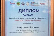 Среди победителей нашего района наградили и Театр танца « Везунчик» - дипломом Лауреата Республиканского этнического фестиваля « Наш дом Татарстан»! Поздравляем! Молодцы! -