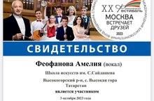 В г. Казань состоялся VII Международный конкурс- фестиваль "Звёздная феерия", в котором приняли участие учащиеся первого класса по вокалу Валиева Айзиля ( лауреат 1 ст) и Хадиева Ясмина ( лауреат 2 ст) преподавателя Шакировой Л. Ш. Мы поздравляем учащихся и преподавателя с творческим дебютом!
