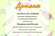 Поздравляем Миннимуллина Ильдана (преп. Зиганшина Г. Р.) с Дипломом Лауреата II степени VI Международного конкурса музыкального исполнительства "Kazan - Music ЙОРТ".