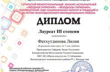 Поздравляем Фатхутдинову Лилию, ставшую Лауреатом III степени I Открытого межрегионального конкурса исполнителей "Звездная гармонь".