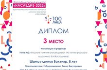 Поздравляем Шамсутдинова Бахтияра (преп. Габдрахманова Е. В.) с Дипломом 3 место I Республиканского конкурса "Наследие - 2023" в номинации "Графика".