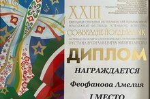 Поздравляем Феофанову Амелию и его руководителя Галиуллину Гульнару Ильдаровну с успешным выступлением на XXIII Ежегодном Открытом Республиканском телевизионном молодежном фестивале эстрадного искусства "Созвездие - Йолдызлык" и Дипломом Iстепени.