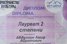 Поздравляем Абдуллина Амира, преп. Карева О. В., ставшего Лауреатом 2 степени V Международного многожанрового конкурса "Пространство культуры".