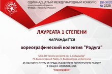 Поздравляем танцевальный коллектив "Радуга", руководитель Галиуллина Рамиля Юнысовна с Дипломом Лауреата 1 степени 12-го Всероссийского конкурса "Таланты России".