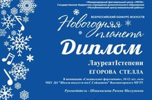 Поздравляем Егорову Стеллу (преп. Шишимагаева Р. М. ) с Дипломом Лауреата 1 степени Всероссийского конкурса искусств "Новогодняя планета" в номинации "Специальное фортепиано", 10-12 лет, соло.