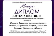Поздравляем квартет баянистом, преподаватель Сибгатуллин И.И., ставшие Лауреатом II степени в Международной музыкальной премии "SFORZANDO". Преподаватель был отмечен Дипломом за профессиональное мастерство! Поздравляем! Молодцы!