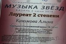 02.06.2018г в г.Казани состоялся Международный конкурс "Музыка звезд" в котором участвовала ученица Дубъязского отделения Школы Искусств по классу вокала Каюмова Алина преподавателя Шакировой Л.Ш. и стала лауреатом 2 степени.