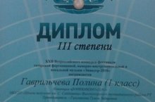 24.03.2018г в г.Казань состоялся ХХII Всероссийский конкурс - фестиваль татарской музыки в котором приняли участие ученица Гаврильчева Полина 1 класс фортепиано преподавателя Гильмановой Г.З.и были удостоины звания дипломанта III степени. Поздравляем!!!