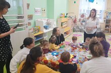 В рамках работы Консультационного центра "Первые шаги" - "Беренче адымнар" на базе нашего детского сада сегодня прошёл семинар-практикум для родителей малышей от 0 до 3 лет "Играя, учимся у детей".