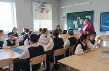 Фрагмент урока литературного чтения в 3 классе по произведению В. Дубровина «Мальчишки»показала учитель начальных классов Фролова Анастасия Геннадьевна. Далее открытый интегрированный урок (география и финансовая грамотность) «Как подготовиться к поездке в страну Северной Африки-Египет» провели в 7 классе учителя Газизова Лилия Ильдаровна и Булгакова Любовь Витальевна.