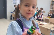 Орлята России 1А класса на уроке труда выполнили из пластилина синичек.