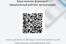 Вы можете оставить мнение о нашей организации. Чтобы оценить условия осуществления образовательной деятельности наведите камеру Вашего телефона и отсканируйте QR-код или перейдя по ссылке http://bus.gov.ru/qrcode/rate/811067