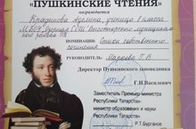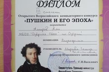 На Всероссийском творческом конкурсе "Пушкинские чтения" учащаяся 8 класса Крадинова А. завоевала Диплом 3 степени, руководитель Маркова Г.В. Поздравляем! Желаем творческих успехов!