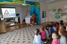 Для ребят старшей и подготовительной групп детского сада провели просмотр тематических мультфильмов, в рамках мероприятий, приуроченных Всемирному Дню памяти жертв ДТП