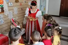 В рамках Года культурного наследия народов России средняя группа «Лучики» провели воспитанникам из других групп экскурсию в мини-музей «Русская изба»,где познакомили детей с жизнью, бытом и традициями наших предков. /Россия халыкларының мәдәни мирас елы кысаларында «Лучики» урта төркеме башка төркемнәргә йөрүче балаларга «Русская изба»мини-музеена экскурсия үткәрде,анда балаларны ата-бабаларыбызның тормышы, көнкүреше һәм гореф-гадәтләре белән таныштырдылар.