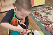 Наши самые маленькие воспитанники из группы "Пчёлки" тоже с удовольствием наблюдают и ухаживают за растениями./ Безнең "Пчёлки" төркемендәге иң кечкенә балаларыбыз да үсемлекләрне рәхәтләнеп күзәтәләр һәм карыйлар.