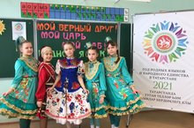 В рамках Международного дня родного языка 6 февраля в 4 «В» классе в количестве 35 учеников было проведено внеклассное мероприятие «Мой добрый друг! Мой царь! Мой враг! Родной язык!» В своих выступлениях учащиеся рассказали, что каждый язык по-своему богат, красив, самобытен, оригинален. Поэтому нужно не забывать его, изучать, беречь и любить, говорить на нем, гордиться им! Дети исполнили песни на разных языках, рассказали стихи С.Есенина и М.Джалиля. Девочки показали быстрый татарский танец.