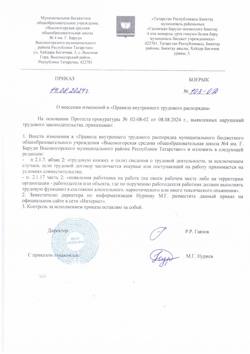Правила внутренного трудового распорядка