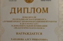 Республикакүләм бәйгедә катнашып, җиңү яулавы белән безнең коллегабызны, Алсу Ришатовнаны котлыйбыз! Хезмәтендә уңышлар, яңа үрләр яулавын телибез. Зур рәхмәтебезне "канатландырып" җибәрүче, ярдәм күрсәтүче педагогларыбызга - Костюнина М.Н., Нигматзянова А.В., Грачева О.В., Панкова Н.Н., Шакирова А.Н. җиткерәбез.