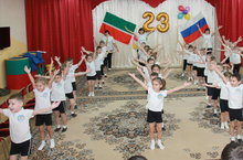 Балалар бакчасында чыгарылыш, зурлар төркемнәрендә "Туган илне саклаучылар" көненә багышланган чара узды.Чакырылган әтиләр, бабайлар, абыйлар чарада актив катнаштылар, уңай тәэсир алдылар.