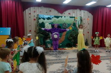 Средние группы на осеннем утреннике встретились с мультипликационным персонажем - Лунтиком.