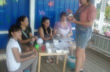 Сегодня творческий коллектив детского сада создавал композицию из живых цветов. Итогом работы была композиция по произведению Г.Тукая "Су анасы"
