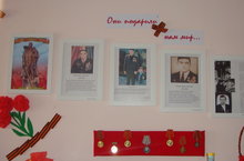 В детском саду и каждой группе навевает о былом, о Великой Отечественной Войне. Воспитатели групп работая совместно с родителями оформляют стенды о Ветеранах и пожилых людях которые помнят и хранят в памяти тяжелые мгновения Великой Отечественной Войны. Низкий Вам поклон! Дорогие наши Ветераны- за то, что подарили нам Мир!