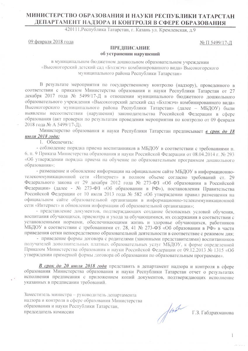 Акт проверки органом государственного контроля(надзора) в сфере образования № 5499/17-Д