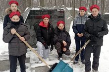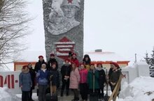 Юнармейцы военн-патриотического клуба "Молодая гвардия" Высокогорской школы №3 почистили от снега памятник в парке Победы.
