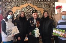 С Днем Защитника Отечества поздравили учащиеся юнармейцы, форпостовцы Бирюлинской СОШ ветерана Великой Отечественной Войны Ибрагимова М.С.