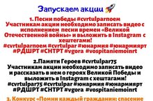 акция "Памяти героев" , конкурс "Помни каждый гражданин :спасение номер 01", акция "Путешествие в мир Г.Тукая" и марафон "Хорошего настроения". С условиями участия в данных акциях вы можете ознакомится на официальном сайте в сети инстаграмм @cvrtulpar. Присоединяйтесь к нам!