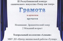 Творческий коллектив "Алкыш" активный участник конкурса "Театр как театр". Поздравляем ребят с достигнутым результатом.