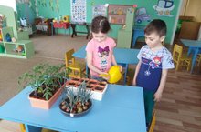 Безненң балалар үсемтекләр үскәнен карарга яраталар, Тәрбиячегә аларга су сибәргә булышалар.