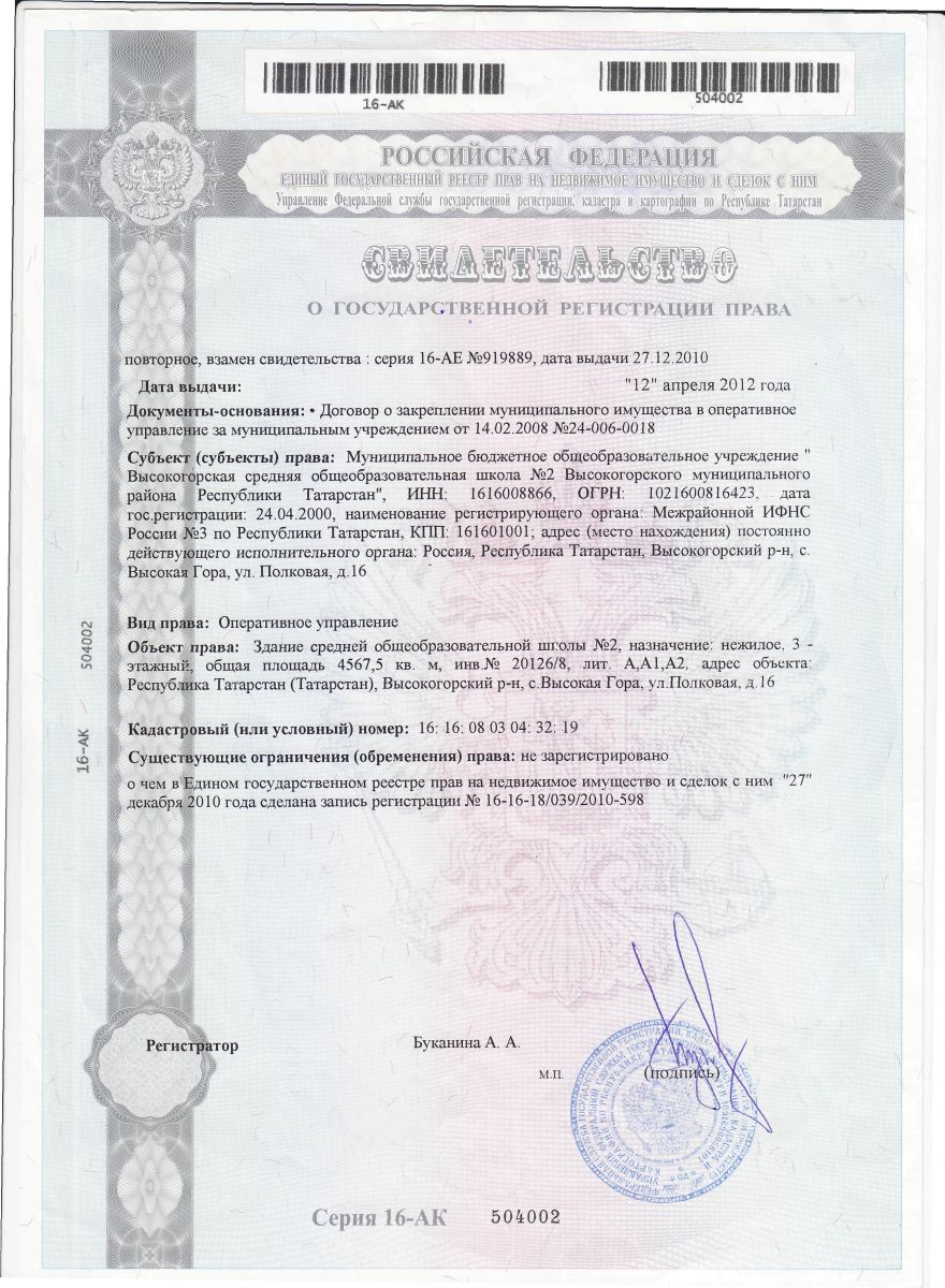 | Короткое название: | МБОУ "Высокогорская СОШ № 2" |