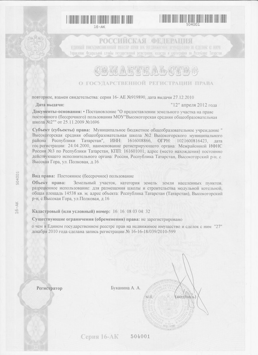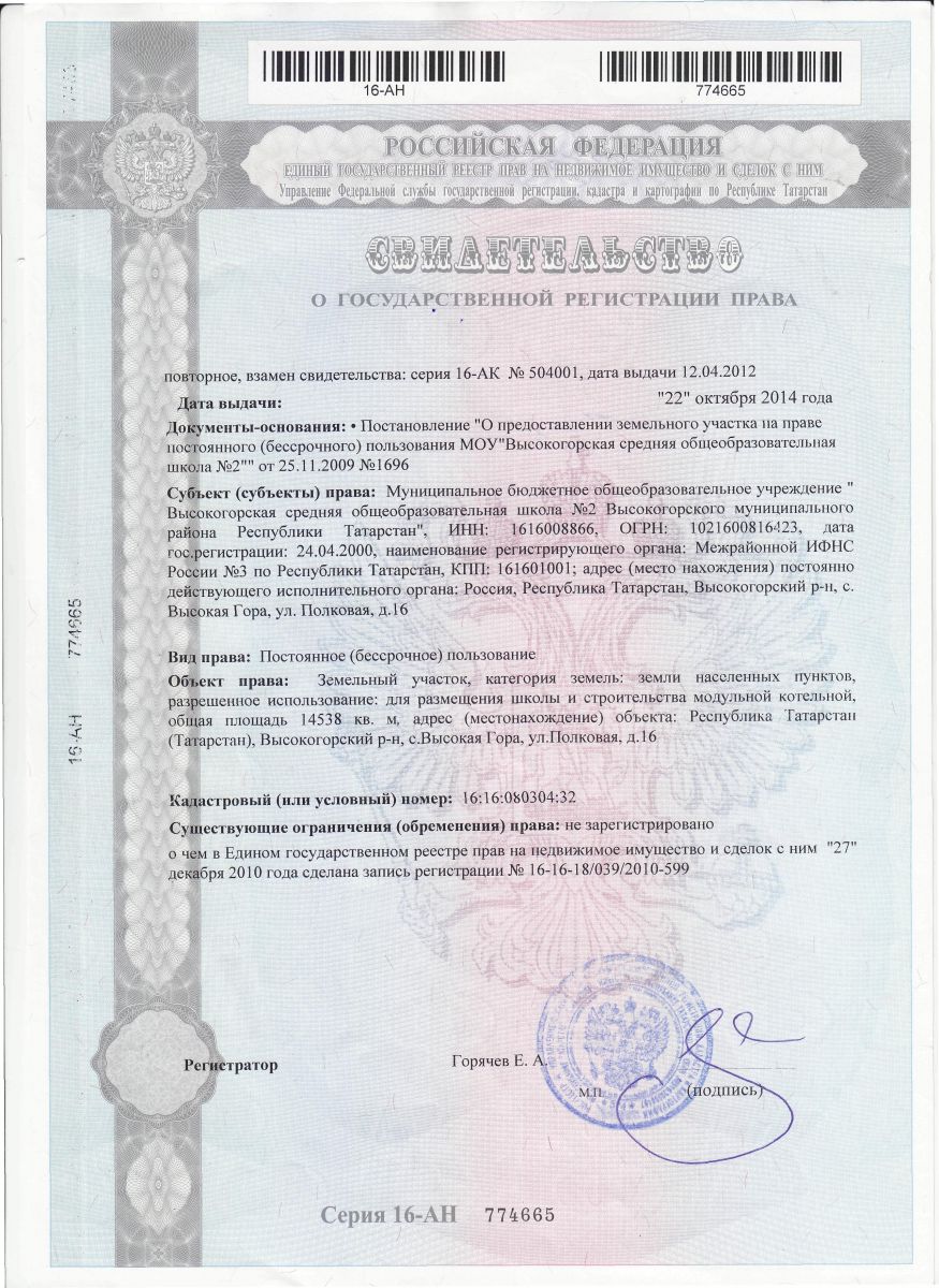 | Адрес: | 422701, Республика Татарстан, Высокогорский район, село Высокая Гора, улица Полковая, дом 16 |