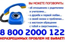 Фондом поддержки детей, находящихся в трудной жизненной ситуации, проводится общероссийская акция «День доверия», направленная на популяризацию Общероссийского детского телефона доверия 8-800-2000-122, как службы экстренной психологической помощи детям и подросткам.