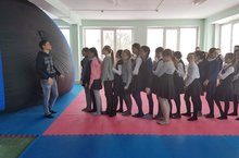 Сегодня в школу приехал мобильный планетарий. Дети посмотрели научно -позновательное представление "Николай тесла"