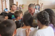 В этот день распахнул нам свои двери спортивный комплекс «Биектау». Мы провели «Веселые старты» совместно с ребятами МБОУ ВСОШ №2 . Программа «Веселых стартов» была довольно насыщенной. Первым заданием было представление команд. Оно было задорным и рифмованным. Командам были предложены занимательные, иногда очень непростые конкурсы с бегом, прыжками на мячах, где они смогли проявить свои спортивные навыки. Все этапы этого увлекательного соревнования проходили в напряженной борьбе. Болельщики и зрители следили за ходом событий и очень переживали. Спортивный задор и желание добиться победы для своей команды захватывали детей настолько, что они не замечали происходящего вокруг. В зале царили смех, шум и веселье. Все были счастливы! А счастливые от восторга глаза детей – лучшая награда.