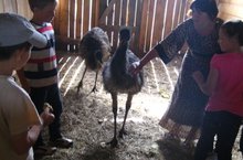 Ребята отправились на экскурсию в деревню Ямашурма на страусиную ферму. Для нас это экзотика - увидеть вживую настоящего страуса, поэтому детям было очень интересно. Но на ферме оказались не только страусы, но и другие обитатели: большие кролики, осел, верблюд, эму, пони, лебедь, черепаха. У детей была возможность покормить животных.