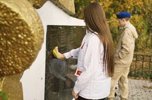 Первые совместно с Юнармейцами вышли на уборку памятника павшим землякам во время Великой Отечественной войны. Ребята регулярно ухаживают за этим местом в рамках проекта «Верни герою имя».
