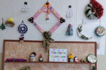 Яңа ел алдыннан укучылар үз куллары белән ясаган Яңа ел уенчыклары стендын оештырдылар.
